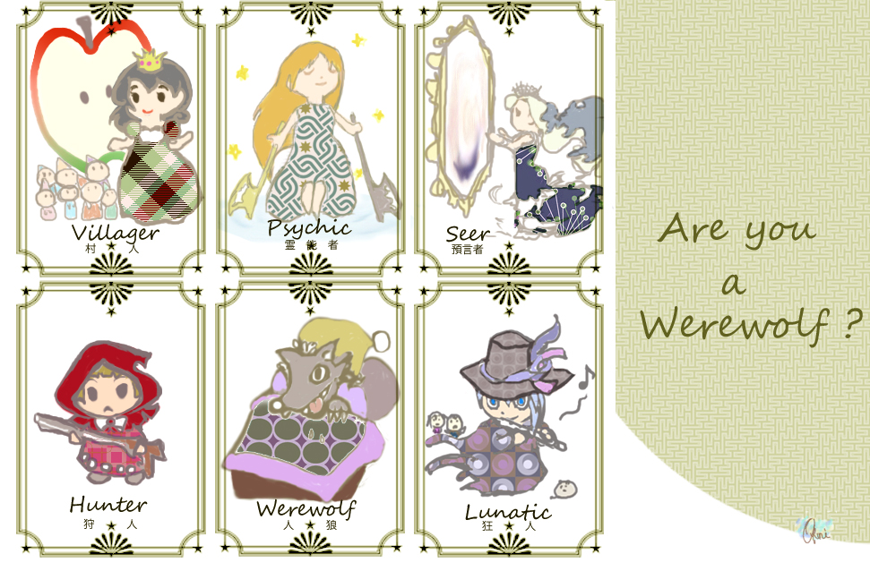 「人狼ゲームの役職カード」。