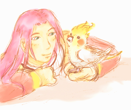 手乗りインコさん…描いてみたんですけど実際のサイズより大きくなってしまったかも;´Д`)