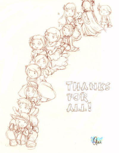 はずれちゃったよー、な方へ。色なしの線画+ちびキャラなのですが、ざざっと皆さんを描きました。