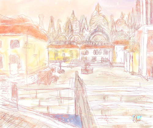 描けたーっと思ってあらためて風景と見比べると、あれ?なんか左右の建物の位置がおかしいw・゚・(´∀`*)゚とか。