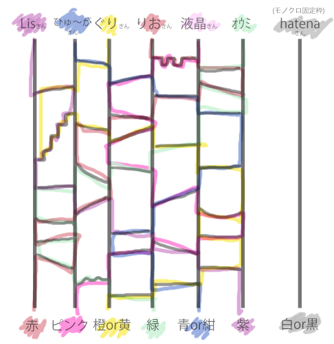 絵描きさんの各テーマカラーをあみだで決定しました!