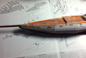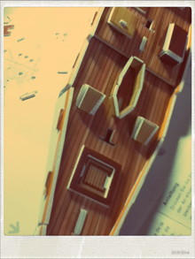 甲板をズームup。色とか最初に付いているので塗装がいらないのです。ちゃんと木目の色。良いかも♪