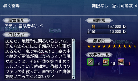 念のため別キャラでも試してみました。そちらはサンクトに入れる程度の海域調査だけやっていたキャラで冒険は全然のキャラ。