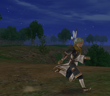 何かないかと倉庫を探し、見つけた服と弓をつかんで会場へ。